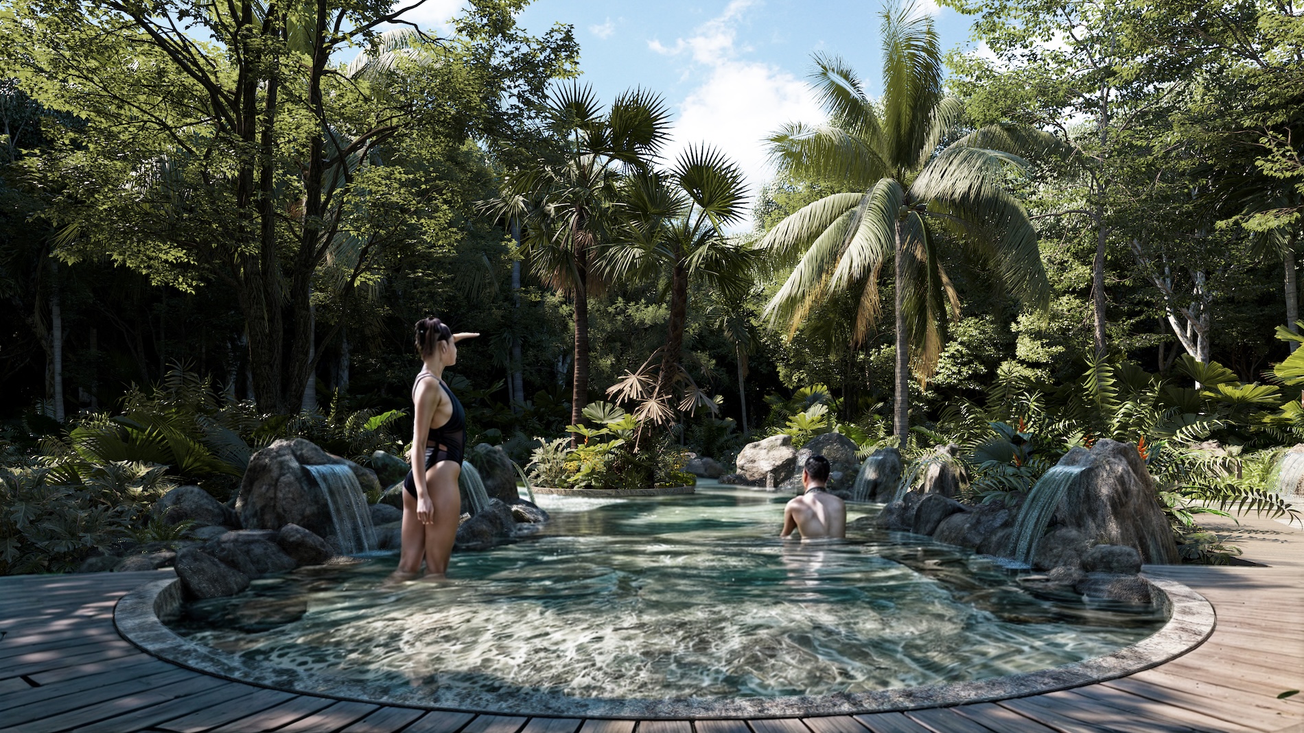 - 🏊 Amenidades de lujo incluidas: Piscina sensorial, sauna, jacuzzi, zona de yoga, huerto, mirador y más